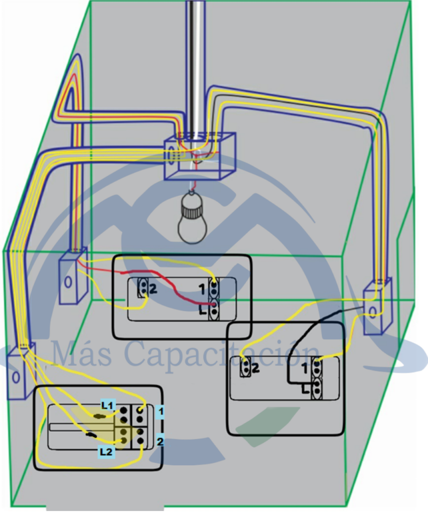 CÓMO CONECTAR DOS APAGADORES DE ESCALERA CON TRES FOCOS Aprende a conectar dos apagadores de escalera y estos controlaran tres lamparas Materiales: Cable negro del 12 AWG Cable blanco del 12 AWG Cable rojo del 14 AWG Cable amarillo del 12 AWG Capuchones 3 Sockets de baquelita Dos apagadores de escalera Interruptor termomagnético de 15 […]